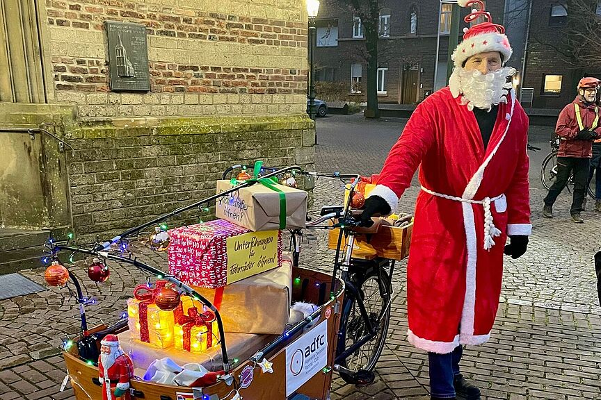 Trotz kühler Temperaturen war die Stimmung bei den Teilnehmenden hervorragend. Viele waren als Weihnachtsmänner, Weihnachtsfrauen oder Wichtel verkleidet und fuhren auf festlich geschmückten Fahrrädern, die mit leuchtenden Weihnachtslichtern erstrahlten. Einige Teilnehmende hatten ihre Wünsche für eine fahrradfreundlichere Stadt sichtbar aufgeschrieben: „Einbahnstraßen öffnen“, „Unterführungen für Fahrräder frei“ oder „sichere Radwege“ war auf den Geschenken zu lesen, die ein Weihnachtsmann mit einem Lastenrad mitbrachte.