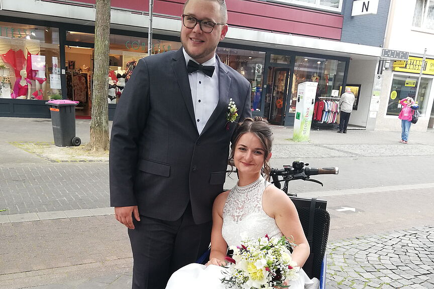 Robin und Carola Wulf nutzen das Rad, um ihre Hochzeit den Corona-Regeln entsprechend in kleinem Kreis mit einer Radtour durch die Stadt zum Rosengarten zu feiern. Wir freuen uns für sie mit, gratulieren ganz herzlich und wünschen ihnen alles Gute.